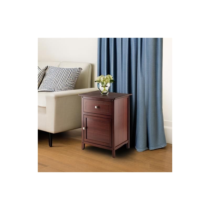 Simple and highly functional Accent or Night Stand is perfect for any room dcor and anywhere in the home. It has plenty of storage include one drawer and cabinet with wood door and satin nickel knob.