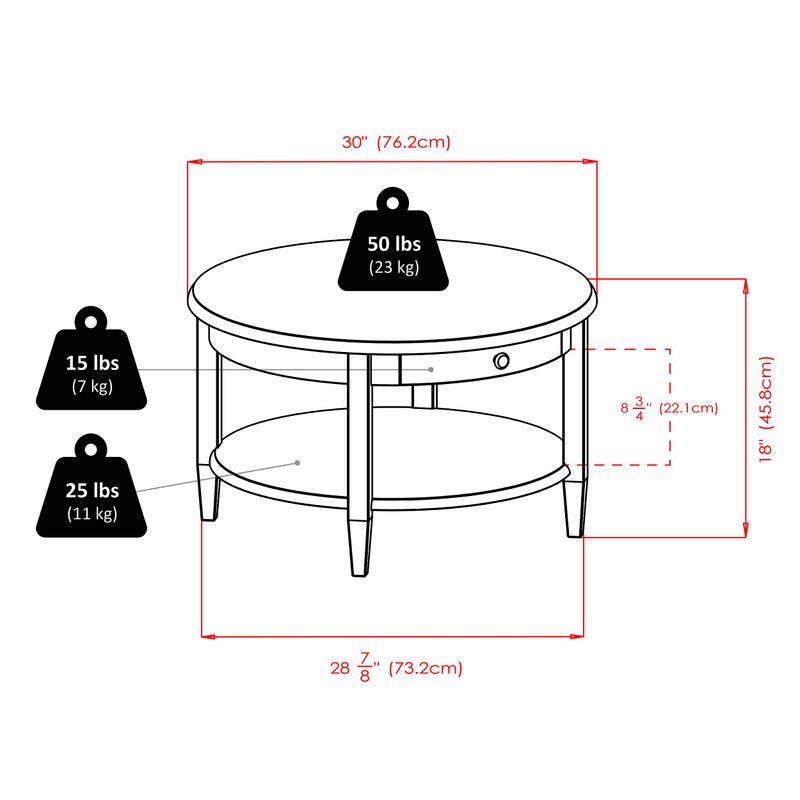 - Classic round coffee table offers simple, tailored elegance