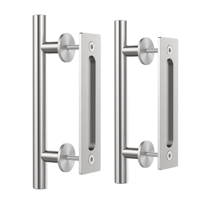 WINSOON 2 Pack12 Sliding Barn Door Handles Hardware with Flush Finger Pull Double-Sided Design, Pull and Flush Barn Door Handle Kit, Solid Steel Material, for Gate/Garages/Cabinet (2, Stainless)