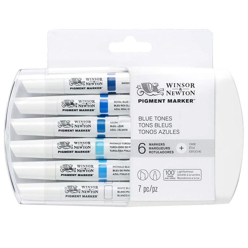 - Set includes Winsor & Newton Pigment Markers Indigo, Royal Blue Light, Azure, Phthalo Turquoise Light, Phthalo Blue Light, and the White Blender