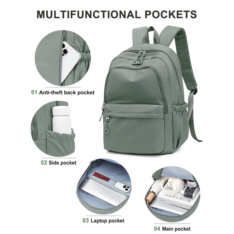 - 【Large capacity lightweight backpack with multiple pockets】 This lightweight bookbag has two compartments, two side pockets, a front pocket, and an anti-theft pocket that can hold 8 to 20 books or magazines, headphones, water glasses, umbrellas, and other items. The main compartment also has multi-functional pockets that can store different items such as mobile phones, power banks, tablets, and bus passes.