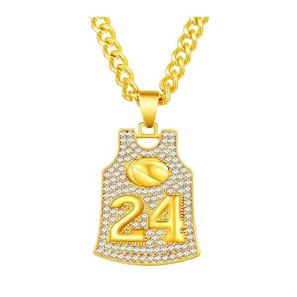 Winssigma Gold Basketball Jersey Necklace, Basketball Number Necklace for Basketball Fans Star Memorial Souvenir(#24)