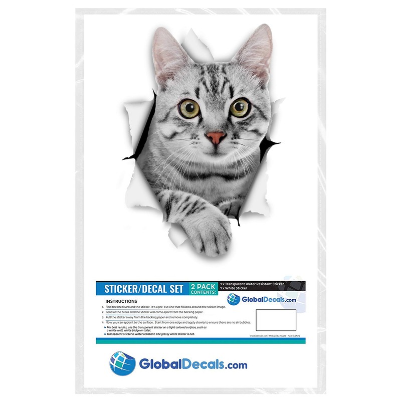 Winston & Bear 3D Cat Stickers - 2 Pack - Grey Tabby Cat Stickers for Wall, Fridge, Toilet and More - Retail Packaged Grey Tabby Cat Stickers