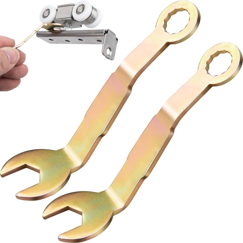 Winsyison 2pcs 3/8" Pocket Door Wrench, N7164 Bi-Fold Pivot Adjustment Angled Wrenchs, Alloy Open Wrench for Sliding Folding Closet Door- Gold