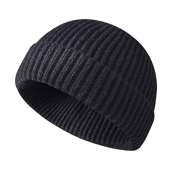 Winter Beanie Hat, Roll up Edge Skullcap Fisherman Beanie, Unisex Soft & Stretchable Cuffed Plain Knit Hipster Docker Winter Hat (Black)