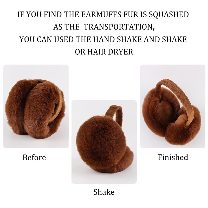- 【POCKET SIZE & WASH EASY】--These women ear muffs fold into a nice little convenient shape for easy carry or storage. The skeleton inside them that makes this possible is very rigid and not easy lose his shape. This fur earmuffs for women also can be wrapped around neck , arms, legs, fit easily in pockets. It’s really Portable for outdoor activities.