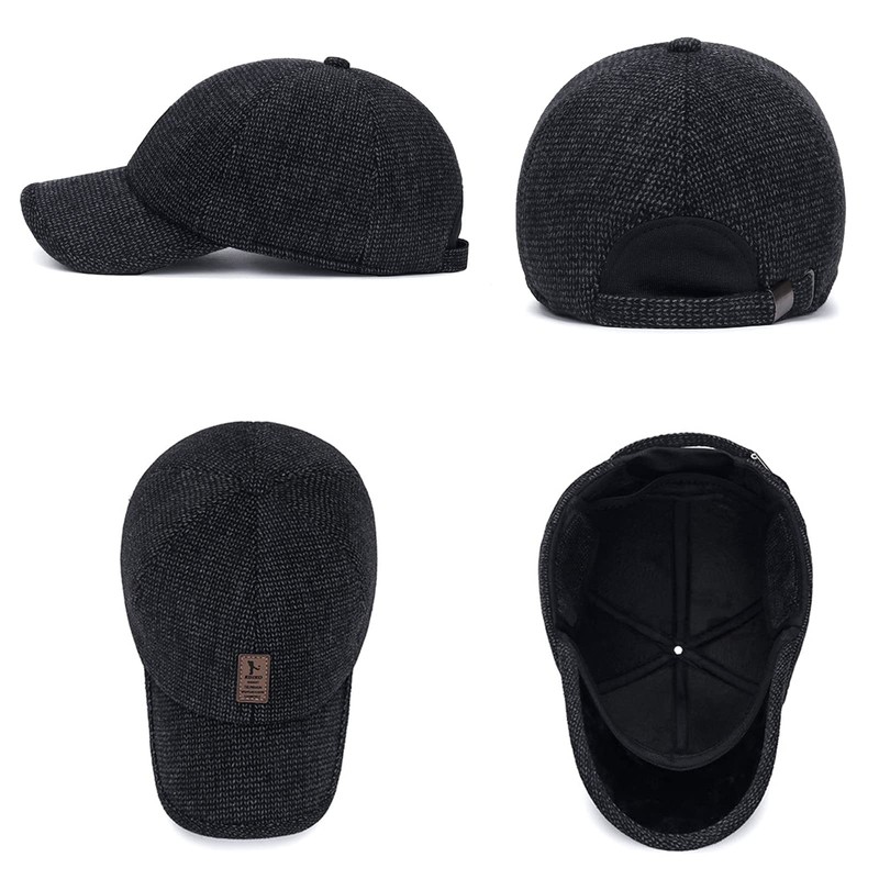 Winter for Men Outdoor Hat, Adjustable Warm Sport Golf Baseball Cap Hats Dad Caps Earflaps Thicken 55-60CM, Black, 7-7 3/8