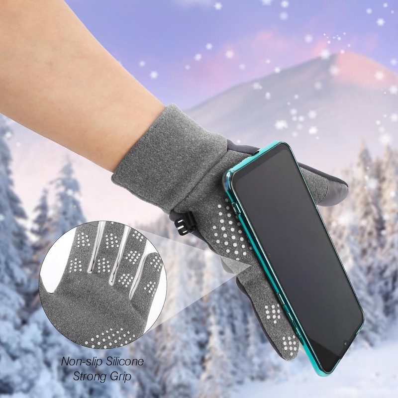 - 【Non-slip and Touch Screen】These touch screen gloves have a large area of silicone particles on the palm and fingers, which increases friction and improves grip. It can help you hold your mobile phone, handlebars, or handrails firmly. Good anti-slip effect when using mobile phones. The fingers use special conductive leather, a sensitive touch screen design, so you can use touch screen devices freely while keeping warm.