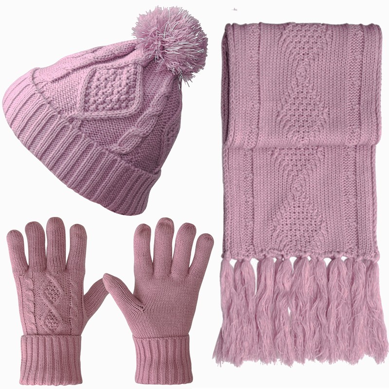 - 【NEW FASHION 】The women hat gloves scarf set included Fashionable Pompom Hat + Touch screen Warm Gloves + Long Scarf. Made by acrylic and cashmere like, warm and soft. Protect you in cold weather