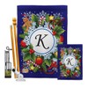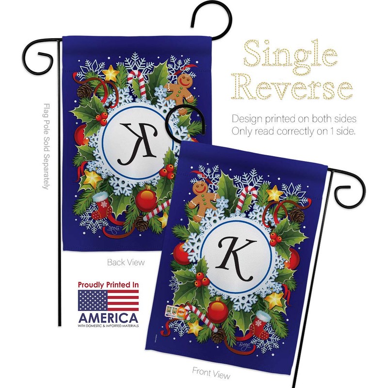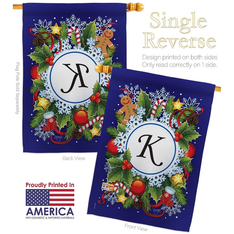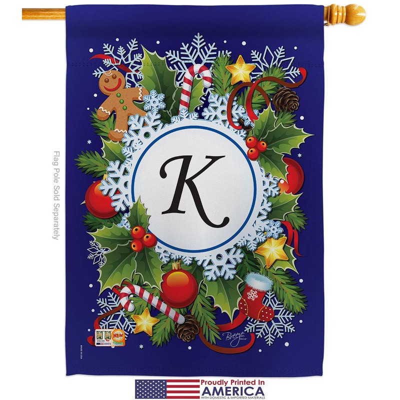 Winter K Initial Garden House Flags Kit Monogram Wintertime Wonderland Snowflake Snowman Ice Skate Season Snow Small Decorative Gift Yard Banner Made In USA 28 X 40