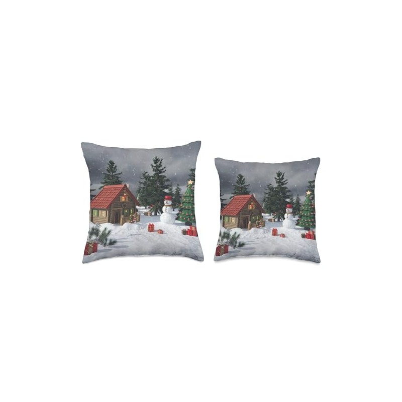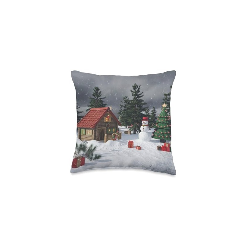 winter snow Christmas tree covered with snow and country Throw Pillow