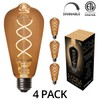 - A pack of 4 large, clear glass ST64 Edison bulbs with visible double helix LED filaments emitting warm white light, four bulbs total, E26 base – Dimmable