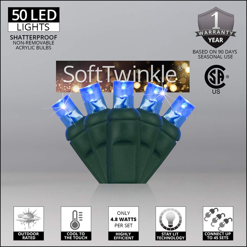 Wintergreen Lighting SoftTwinkle Slow Twinkling Christmas Lights, Soft Twinkle String Lights Pulsing Christmas Lights (50 Lights, 17 Ft, Blue)