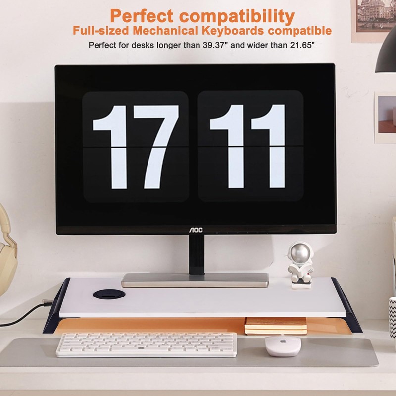 - Superior Desktop Organization: Maximize your desk’s potential with our stand’s spacious design and thoughtful storage solutions. The stand’s clean, extended surface provides ample room for all your essentials, while its organized compartments ensure everything has its place. Keep your desk tidy and your items easily accessible, thanks to the stand's practical and aesthetically pleasing layout.