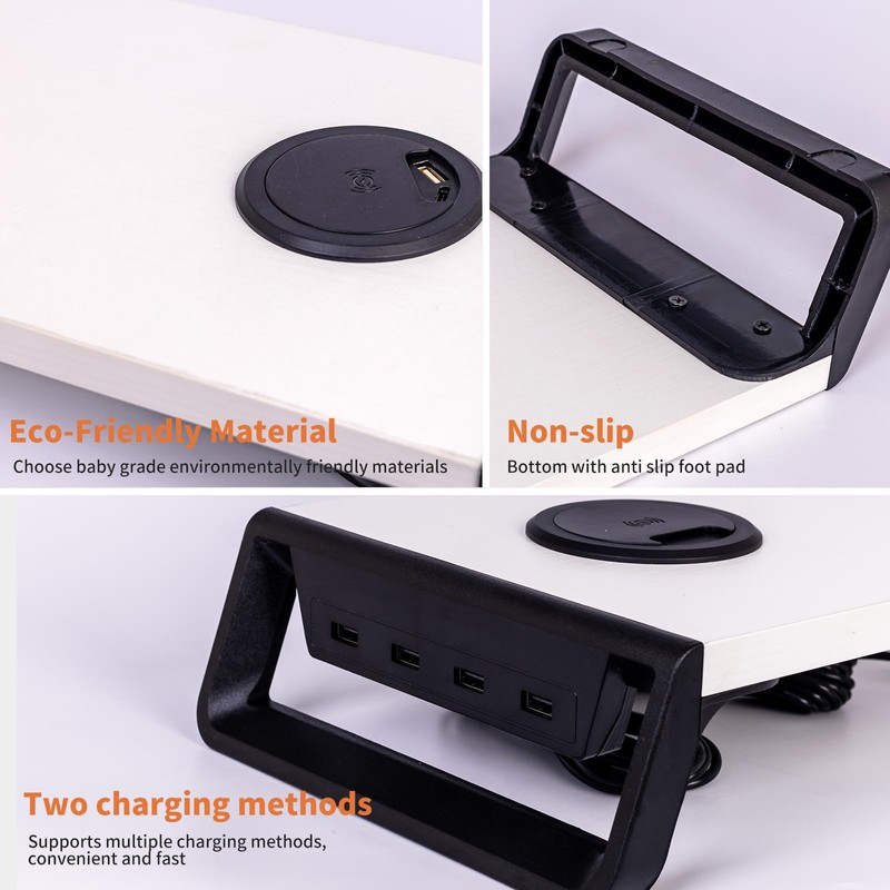 - Integrated Wireless Charging and USB Ports: Say goodbye to clutter with the built-in wireless charging pad and expanded USB ports. This stand features a sleek embedded wireless charger that supports various charging methods, keeping your devices powered without the mess of tangled cables. Side-mounted USB ports offer additional connectivity for your peripherals, making your workspace both functional and stylish.