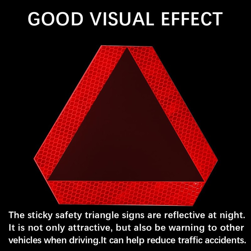 - [Easy installation] : The slow moving vehicle triangle does not need to use screws or straps during installation, and can be directly glued to the rear of the vehicle. First, the pasting position needs to be cleaned and wait for dry, and then the sticker can be torn off the back, aligned and carefully pasted. After pasting, both sides can be pressed by hand to ensure firm adhesion, which can be fitted with high viscosity and is not easy to tear.