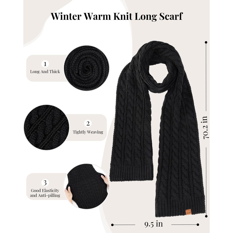 - ★EXTRA LONG KNITTED SCARF:The women's scarf★ is 70.8 inches long, it is extra soft, thick, warm and breathable. It is flexible and anti-pilling, which ensures a long service life. The extended length provides excellent warmth for your neck and can be designed in different ways, allowing you to create a unique look. Perfect for cold weather and a great companion for your autumn and winter wardrobe.