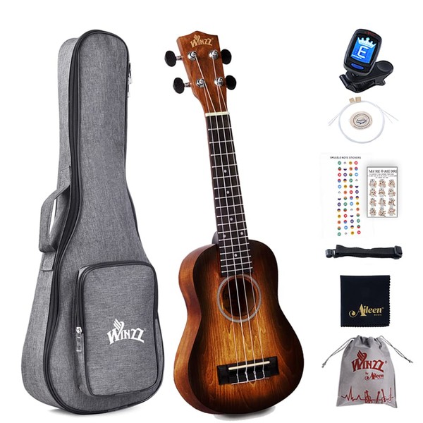 Winzz Kids Adults Ukulele Soprano Beginner Kit 21 Inches with 8 Accessories, Unique Color Design–Brown