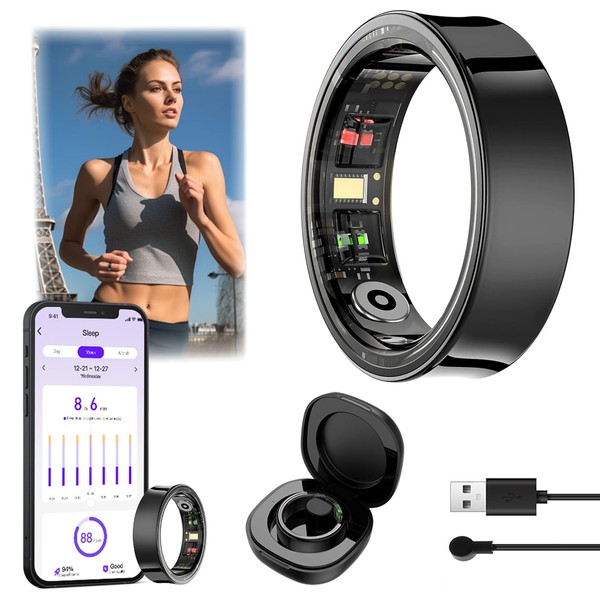 WIOONI Smart Ring Herren Damen, Fitness Ring Tracker Gesundheitsring mit Herzfrequenz 8#