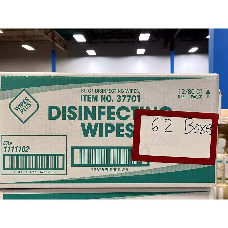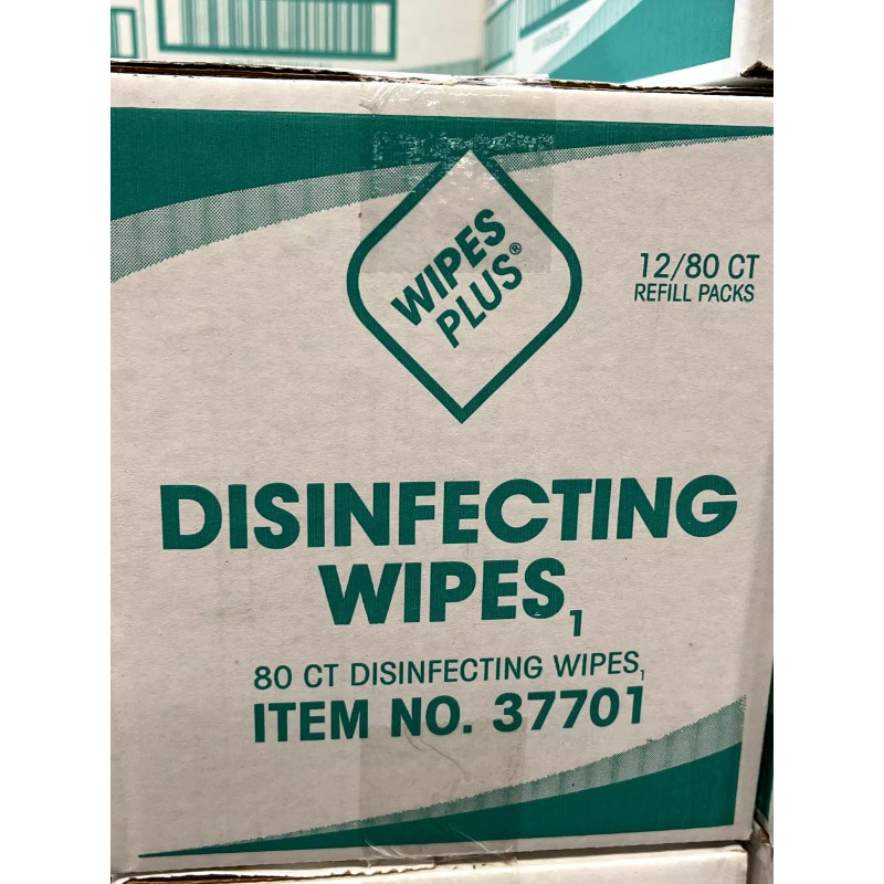 WipesPlus One Box w/ 12 Packs Disinfecting Surface Wipes Item No. 37701 - 80 Sheets/Pack