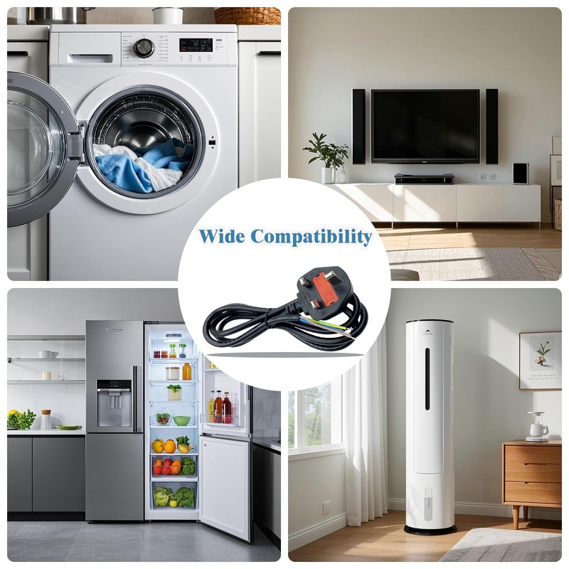 • Extensive Device Compatibility: Engineered to accommodate mainstream UK household appliances, power cable 3pin seamlessly integrates with major systems like refrigerators and washing machines while supporting concurrent operation of security cameras, outdoor lighting systems, and other smart devices. 3 pin power cable comprehensive connectivity ensures reliable power management for multiple electronics in modern British homes