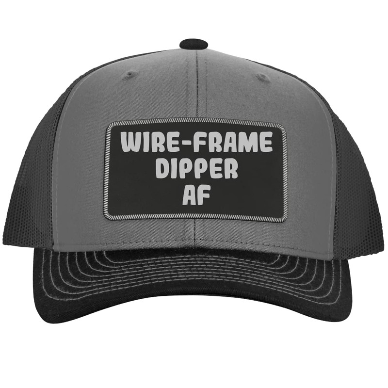 Wire-Frame Dipper AF - Leather Black Patch Engraved Trucker Hat, Grey-Steel, One Size