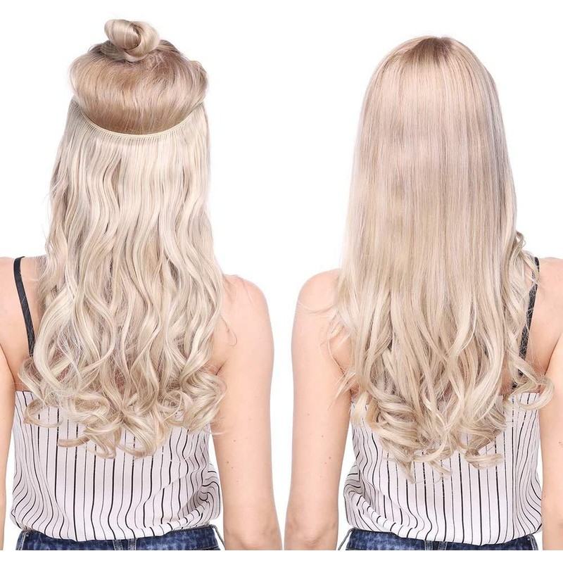 Gather the hair on top head(front hair except), place the wire in hair over your head and adjust it around the top of your head like a headband;Cover the hair extension by the top hair collected before, tidy your hair style carefully and let the extension well blend in with your natural hair.