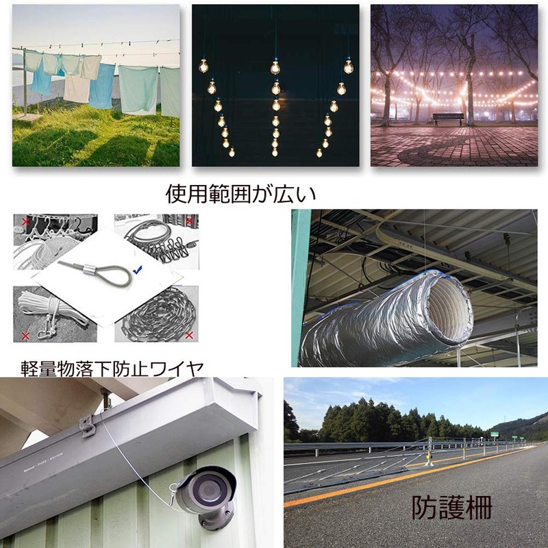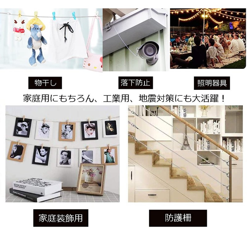 - Scope of Use: Made of stainless steel, it is strong and rust resistant, so it can be used in a variety of situations such as electrical work, gardening, fishing and wind, fairways, and water fields. Can be used as earthquake protection in bookshelves, clothesline for laundry or bicycle brake wire shift wire. Widely used in various fields, such as fishing, forestry work, gardening, electrical, home, transportation, typhoon, earthquake measures, industrial and other leisure use, decorative and household products