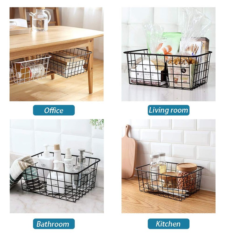 - Versatility: The wire basket is very versatile and practical, can be used in anywhere at home, such as pantry storage, kitchen cabinet, freezer, clothing wardrobe, bedroom, bathroom and any table or shelf storage; The basket is the perfect solution for items storage, let you keep the clutter totally under control