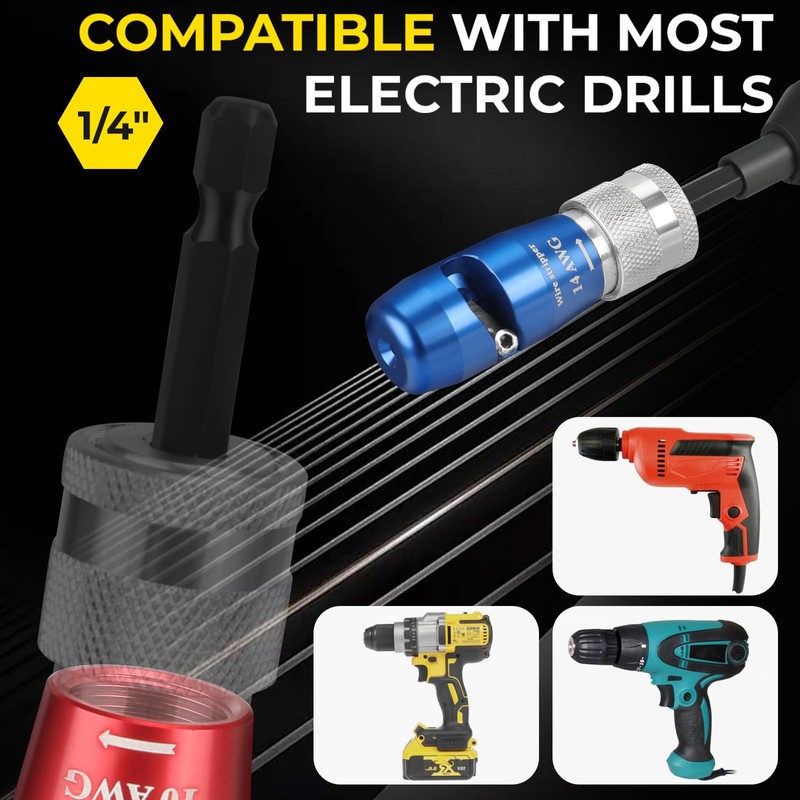 - Work Smarter, Not Harder: With a 1/4" hex shank that fits most electric drills, this tool strips wire insulation in just one second, boosting efficiency by 500% over manual tools. Compatible with most of household and industrial wires, it reduces tool clutter and saves costs.