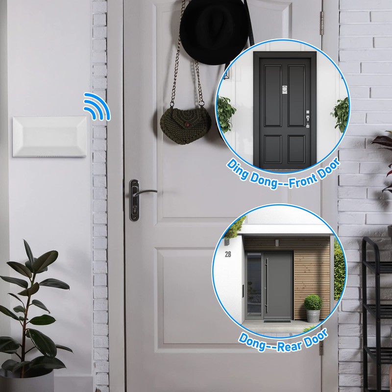 - Two Sounds: there are two sounds for different door; The "Ding -dong" sound for the front door button and the "Dong" sound for the rear or side door