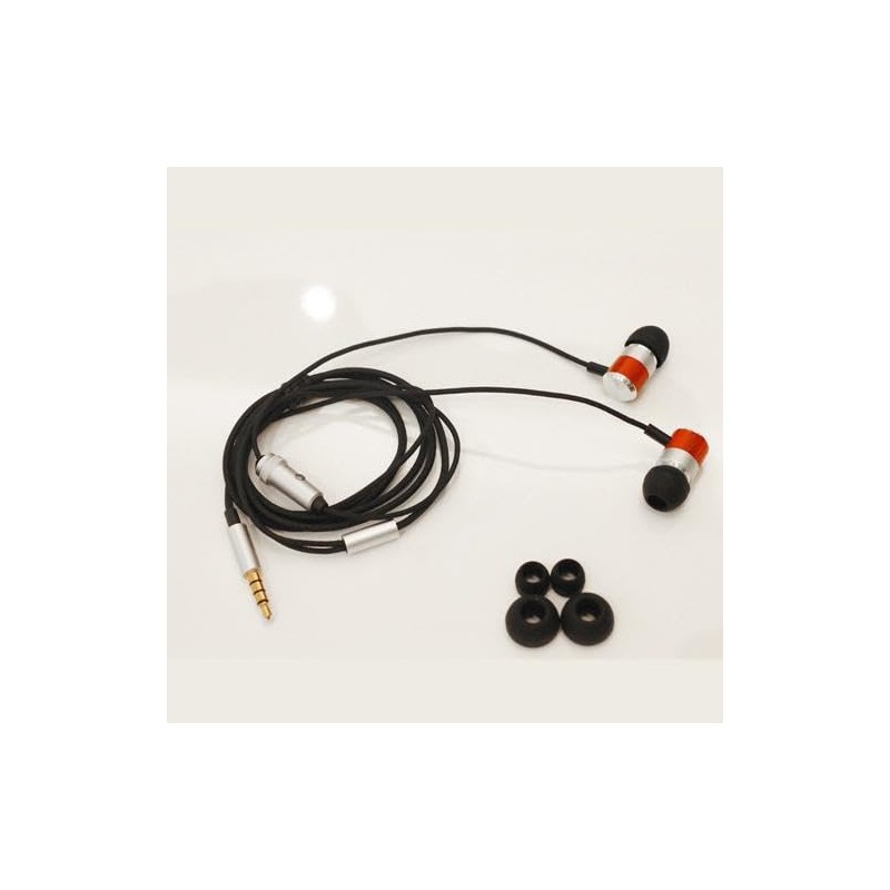 - Fashion-conscious, ergonomic design with sleek metal/wood trim earbuds. Noise-isolating in-ear fit. Compatible with all phones, tablets, MP3 player and other devices with standard 3.5mm earphone jack.