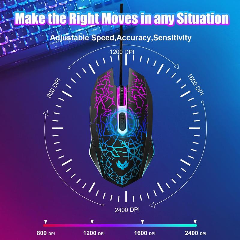 Wired Gaming , 4-Color LED Light Computer , with 6 Silent Click Buttons, 3 Adjustable 2400 DPI USB Wired for Laptop, PC, , Black - Specification: Wired LED Black
