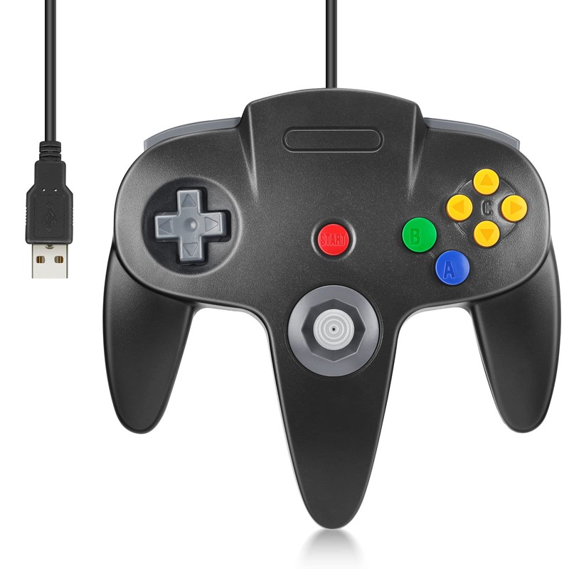 Wired USB N64 Controller, FISUPER Classic Video Game Controller USB Gamepad for Windows PC MAC Raspberry PI Retropie (Black)