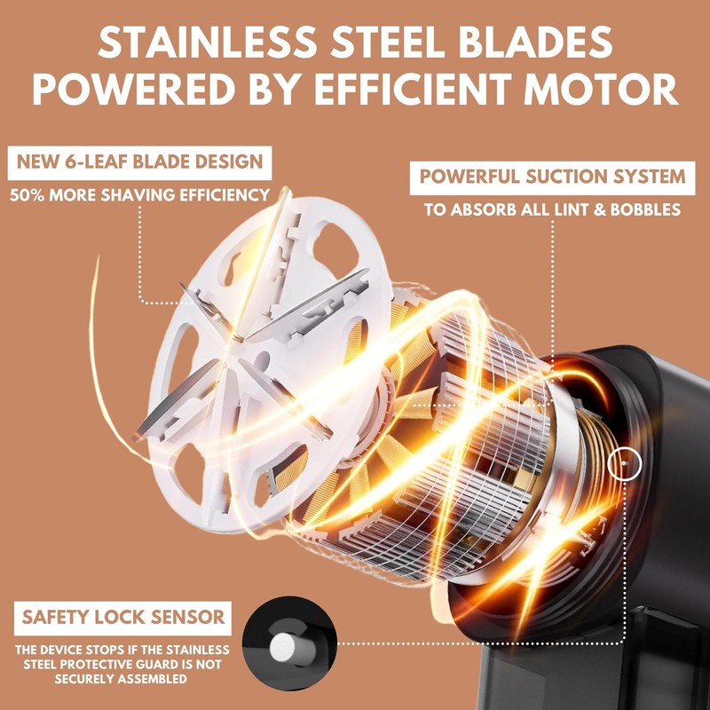 - 【LED LIGHT & EASY TO USE】The 6-leaf stainless-steel blade is 50% quicker at removing fuzz than traditional blades. The large shaving panel and ergonomic handle make it easier to cover large surfaces. The LED display indicates the battery power and speed gear. This electric depiller comes with a large capacity trash tank to collect lint during use. Take advantage of the integrated LED light so you don’t miss any lint balls while shaving.