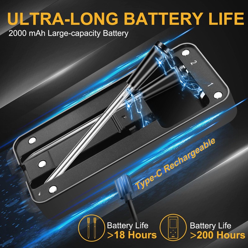 Wireless Bluetooth Meat Thermometer with 2 Ultra-Thin Probes, Smart Digital Food Thermometer 600FT Remote Range, Standalone Smart Base for Grill Smoker Roast Oven, Cooking Gifts