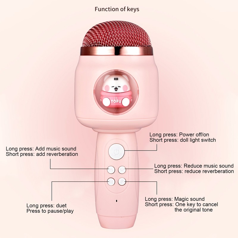 【Wireless BT Microphone】: This microphone features wireless BT connectivity, allowing you to connect to your phone effortlessly. It comes with a built-in speaker, one-key original sound elimination, and instant song accompaniment, providing a seamless karaoke experience.