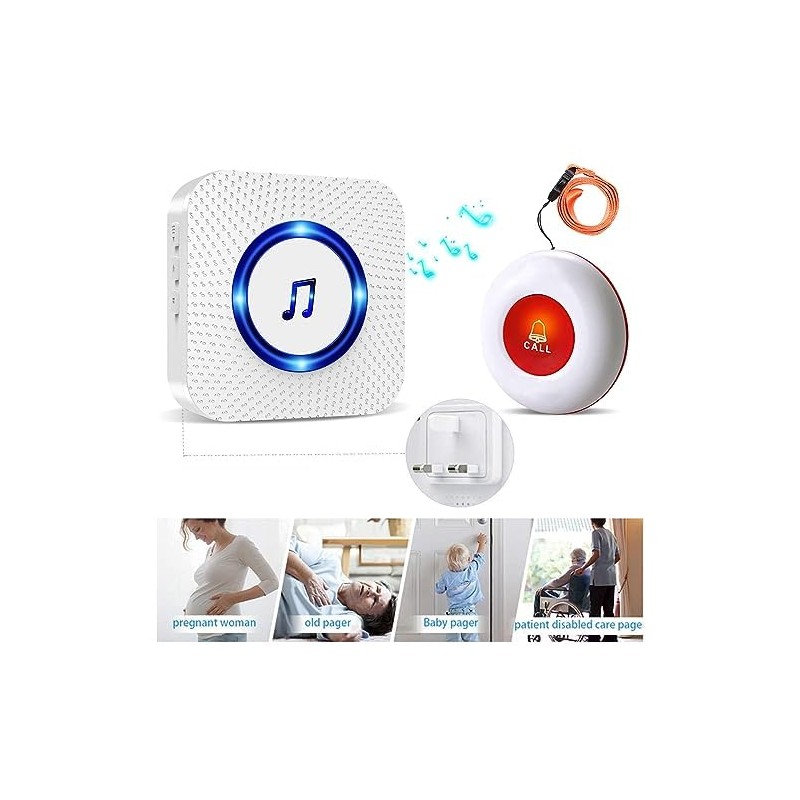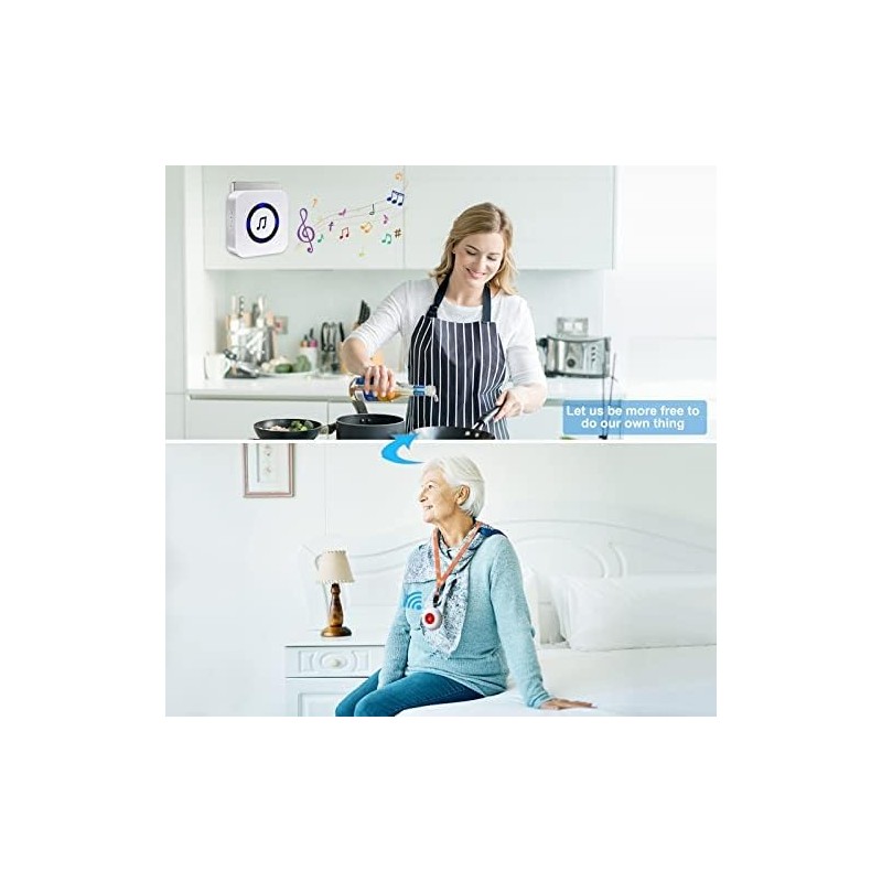 - WATERPROOF CARE BELL: Panic Call Button for elderly is IP55 waterproof, Whether you install it in the washroom or take it outside on a rainy day, you don't have to worry about this caregiver pager getting wet. When assistance is needed, simply pressing a button on the transmitter will cause the receiver to alert a loud sound, not need to Yell to Get Someone’s .