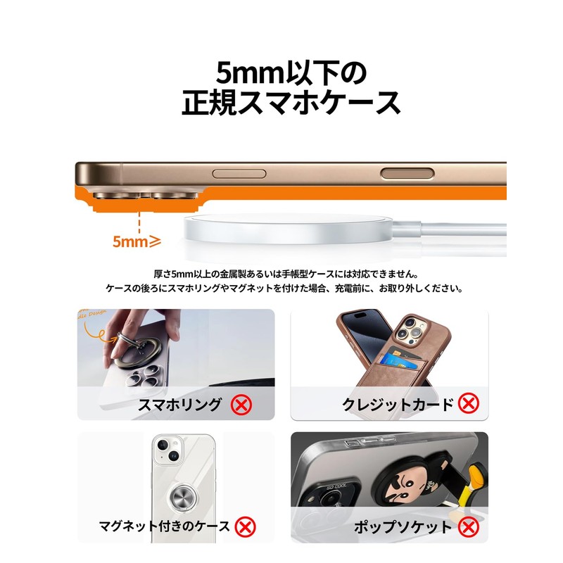 - Wide Compatibility: This wireless rapid charger is compatible with various iPhone 16/15/14/13/12 series Galaxy AirPods2/AirPods Pro (*Please remove cases with thickness of 0.2 inches (5 mm) or more, metal or magnetic cases, and credit cards before charging