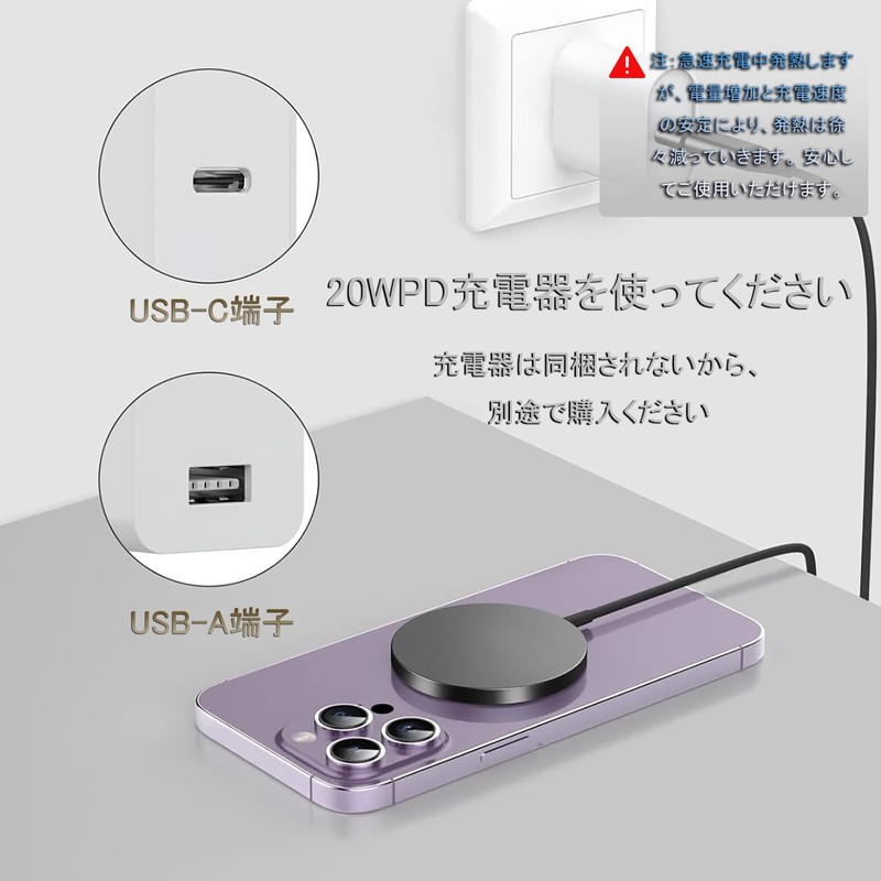 Wireless Charger, Magsafe Charger, Twofox Magnetic Wireless Charger, Wireless Charger, Magnet, Compatible Rapid Charging, Strong Magnetic Absorption, Maximum 15W Output, i-Phone15/Plus/Pro/Pro Max,