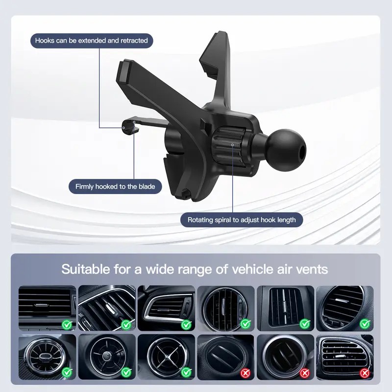 Stable Hook Clip for Air Vents – Strong, anti-slip grip keeps your phone secure on any drive.