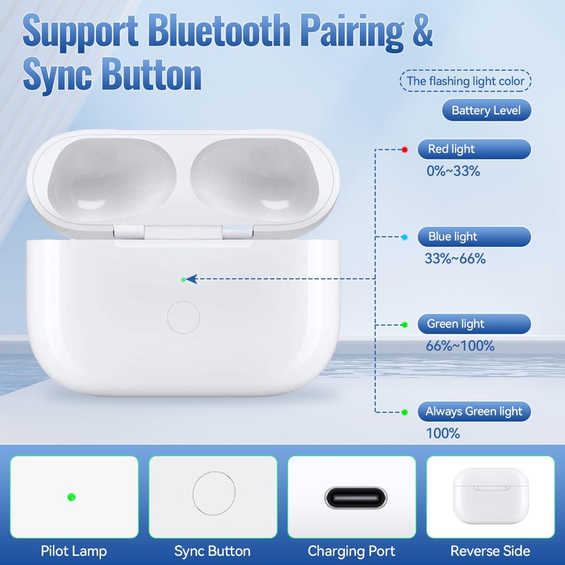 - 😊【Fast Pairing】New upgraded airpod pro replacement case has Bluetooth pairing sync button for easy pairing. It can get rid of the hassle of having to connect manually every time, saving your time.