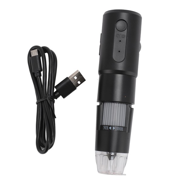 1、MAGNIFICATION AND HIGH DEFINITION: The microscope has 640X480P high definition resolution and magnification ranging from 50X to 1000X, catering to daily magnification needs, features 8 adjustable LED lights that provide ample illumination for detailed observations. 2、EXTENSIVE COMPATIBILITY: The wireless digital microscope is compatible with smartphones, tablets, and PCs, enabling wireless operation on mobile devices or wired connection via USB cable to PCs. It supports for Android 4.4, for iOS 9.0, for Windows 7 8 10, for OS X 10.8, and higher versions. 3、PORTABLE AND RECHARGEABLE: Equipped with a built in rechargeable battery, the microscope is perfect for outdoor use, making it ideal for exploring skin, hair, and the microscopic world. It is suitable for children, students, electronic repair technicians, and anyone interested in microscopy. 4、MULTIFUNCTIONAL: Not just a microscope, the device doubles as a camera, allowing users to take photos and record videos of their observations. Enhance your microscopy experience with the versatility of capturing images and videos using a single device. 5、USER FRIENDLY SOFTWARE: The microscope comes with dedicated operating software for iOS and for Android devices. Through the app, users can stream the microscope's feed to their smartphones or tablets, enabling image viewing, capturing photos, and recording videos effortlessly.