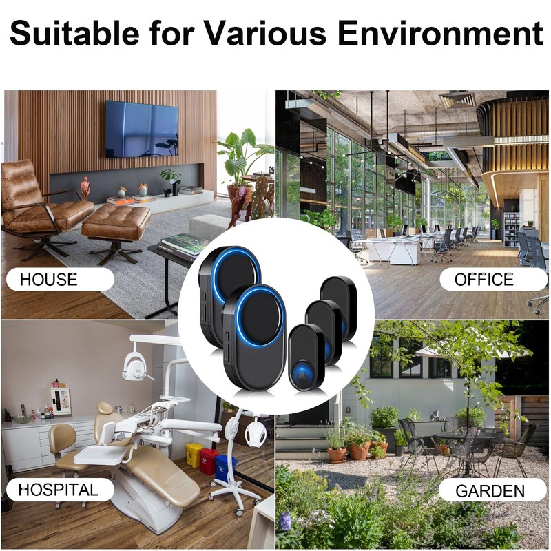 - Long Wireless Range - The range of wireless doorbells for home extend over 1300ft(400m) in open space. Great for large homes, apartments, offices & classroom. You’ll never miss a chime