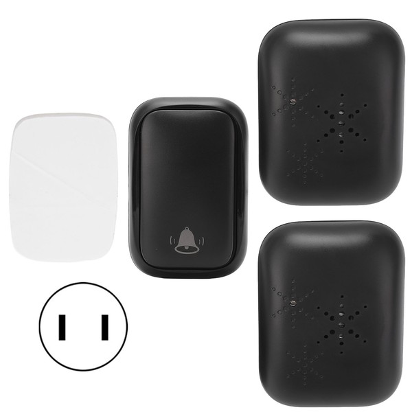 Wireless Doorbell ABS Black Self Powered 150m Range 433MHz with 2 Receivers for Home Hotel Factory AC
