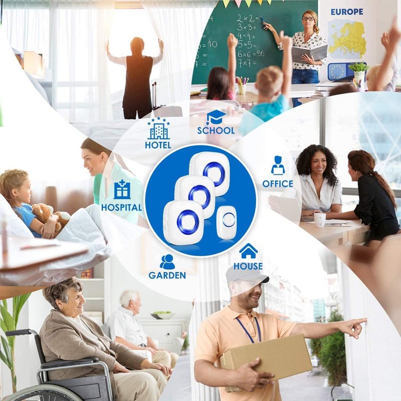 - ⭐【1000FT Wireless Doorbell】-The Wireless doorbell kit includes 1 push button transmitter and 3 plug-in receivers. Up to 1000ft(300m) cordless wireless range(no obstacle) can full cover your home. when visitors push the button transmitter, indoor receiver will ringing. Whether you're in the Kitchen, garden, cellar, you'll always be aware of your visitors.