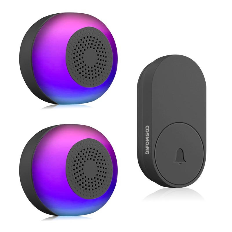 - 【59 Chimes to Choose & Mute Mode】The wireless doorbells not only has 59 unique chimes and 5 adjustable volume levels(0dB to 115dB) to meet your needs for different occasions, but also has a mute mode to choose from so that you don't have to worry about the doorbell chime disturbing your sleeping baby. Even in mute mode, the receiver LED light still flashes and you will never miss a visitor.