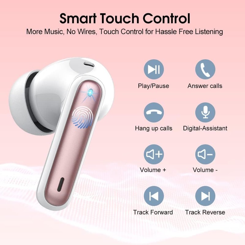 - Smart Touch Controls and Wide Compatibility: The earphones wireless bluetooth feature a highly responsive touch panel, allowing you to play/pause, adjust volume, skip tracks, answer calls, and activate voice assistants with a simple tap. Control everything effortlessly without reaching for your phone. The in ear earbuds are compatible with iOS, Android, and various Bluetooth devices, they seamlessly connect to smartphones, tablets, and more, delivering a stable and smooth user experience.