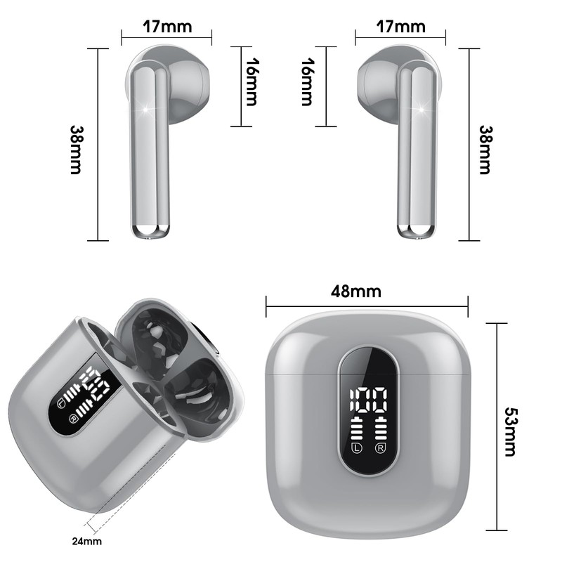 Wireless Earbuds, Bluetooth 5.3 Headphones HiFi Stereo, Mini in-Ear Bluetooth Earbuds, Wireless Earphones with 4 ENC Noise Cancelling Mic, IP7 Waterproof, LED Display, Touch Control Ear Buds, Gray