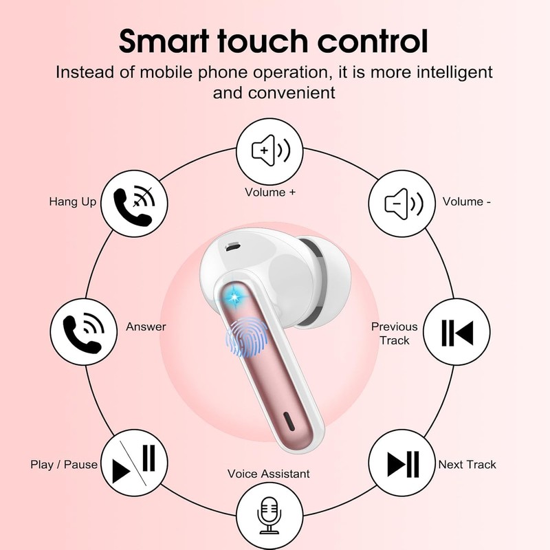 - Smart Touch and 40h Playtime: These ear buds come with a touch area that lets you control play or pause, answer or reject calls, skip tracks, and wake up Siri all without using your phone. The noise-canceling design provides up to 8 hours of playtime on a single charge, and the compact charging case has a 300 mAh battery that can recharge your Bluetooth earbuds up to 4 times, letting you enjoy music all day long.